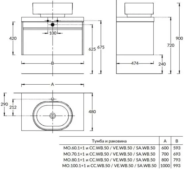 Характеристики товара Тумба-умывальник подвесная Kerama Marazzi Modula 100 белая глянцевая MO.100.1+1\WHT+