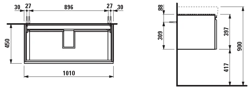 Характеристики товара Тумба-умывальник подвесная Laufen PRO 100 светлый дуб 4.8355.2.096.479.1+8.1396.6.000.104.1