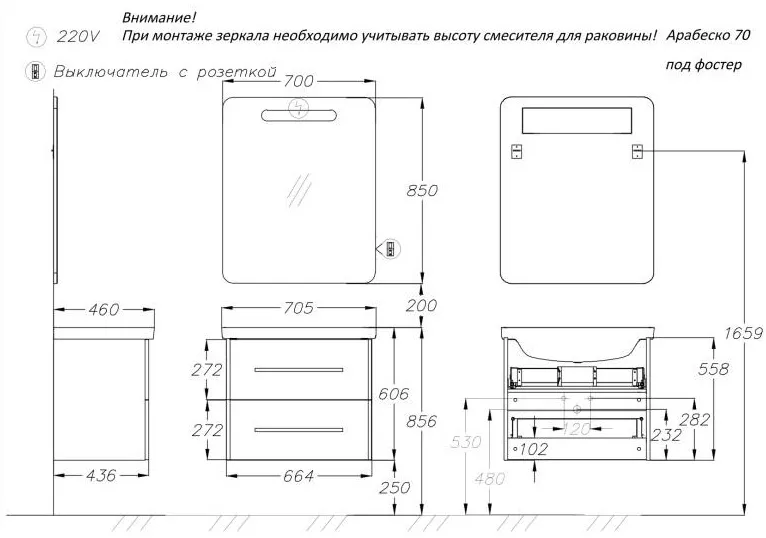 Характеристики товара Тумба-умывальник подвесная Opadiris Арабеско 70 белый Z0000010907