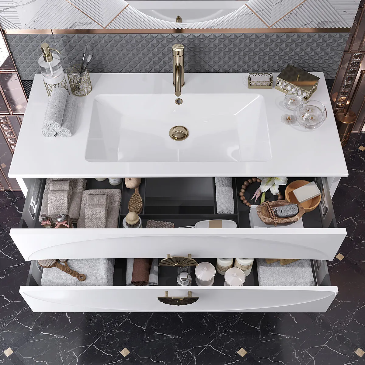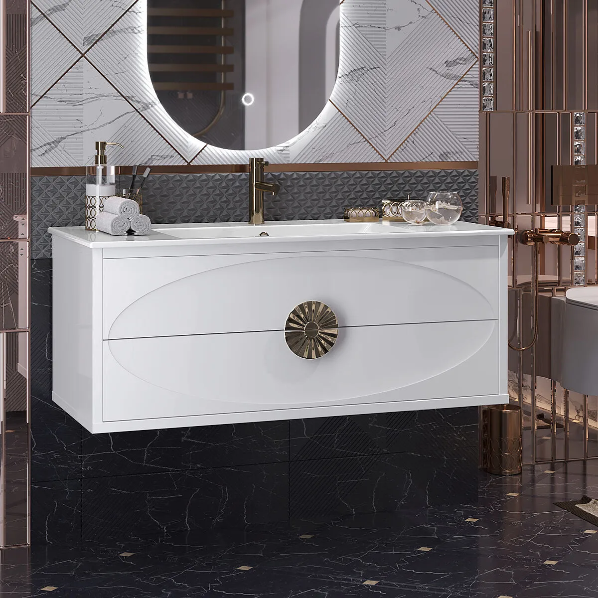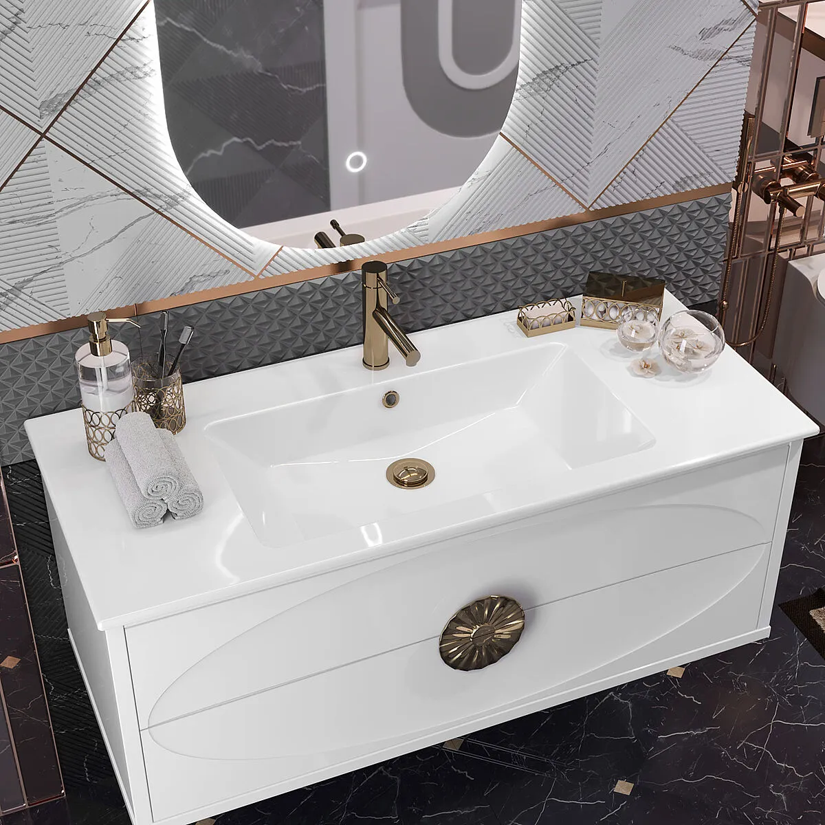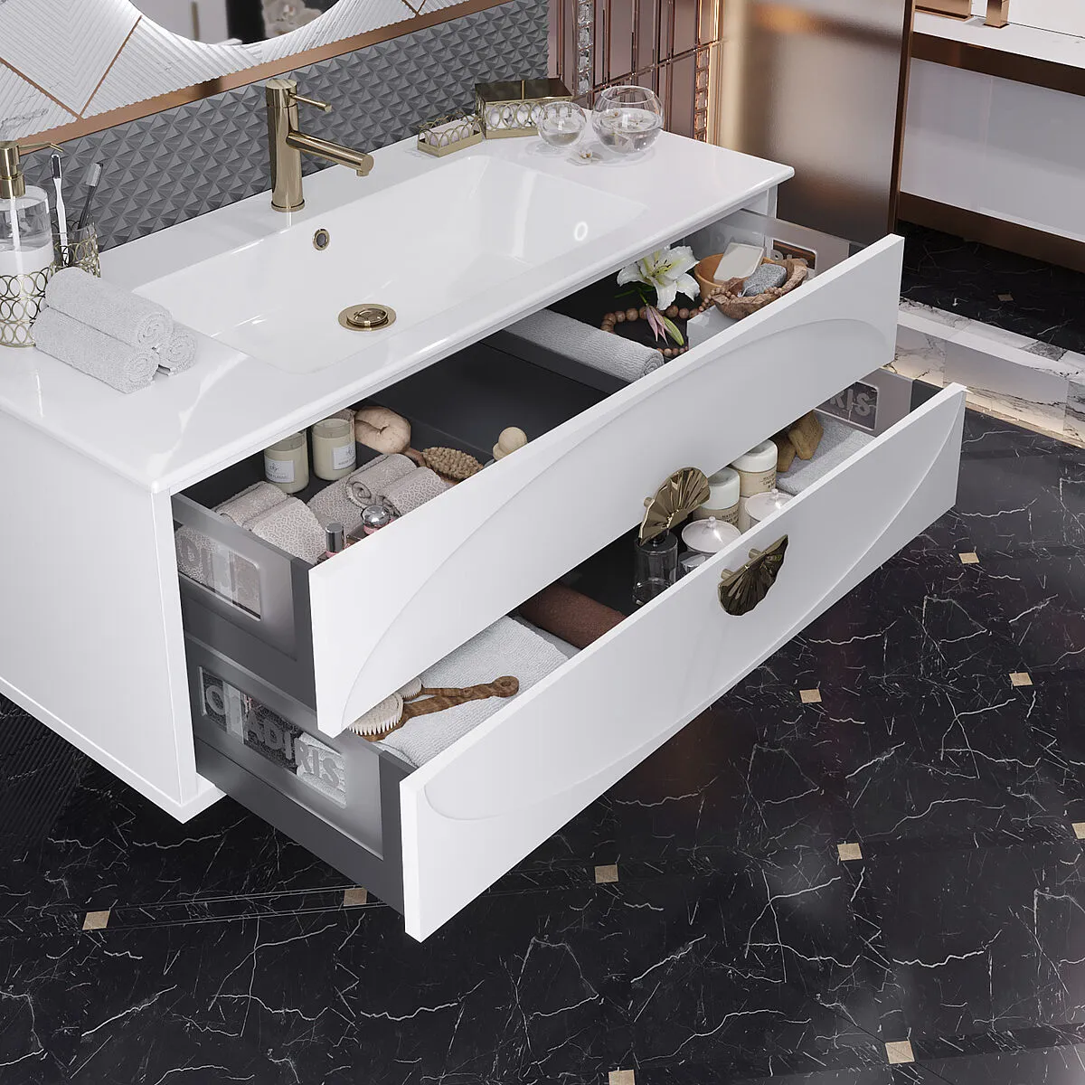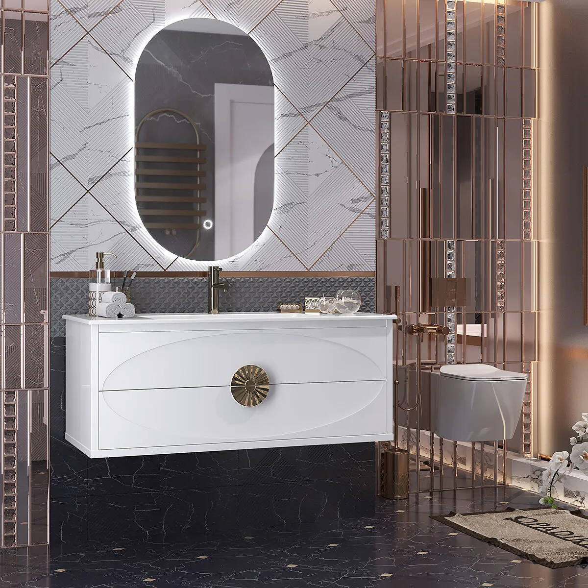 Тумба-умывальник подвесная Opadiris Ибица 120 белый глянец/золото 00-00007079+050600-u-01