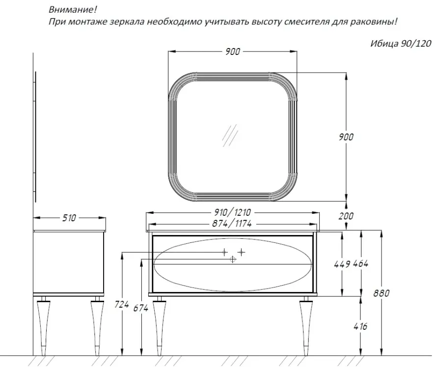 Расположение смесителя: