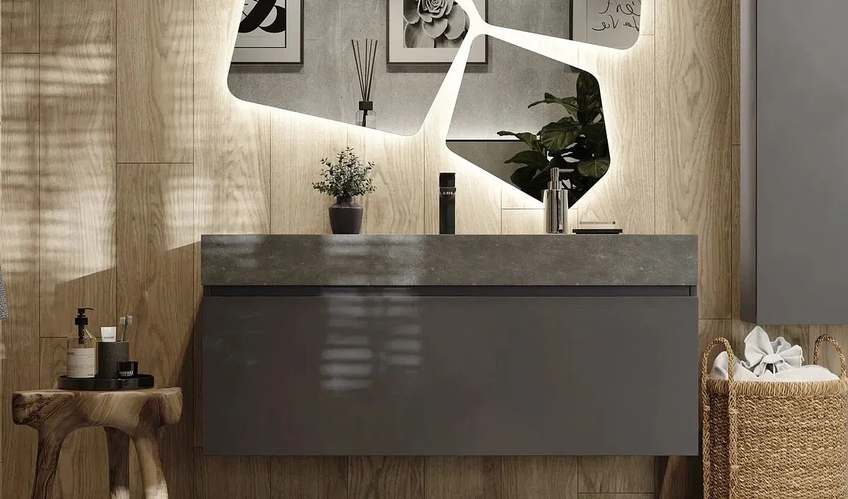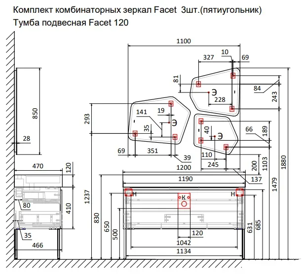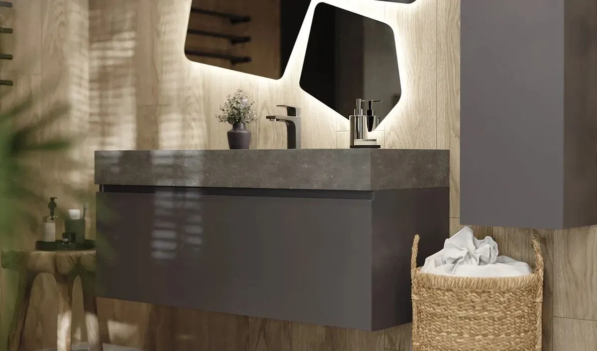 Характеристики товара Тумба-умывальник подвесная Raval Facet 120 антрацит Fac.01.120/P/A/RL+Fac.08.120/Bet/RL