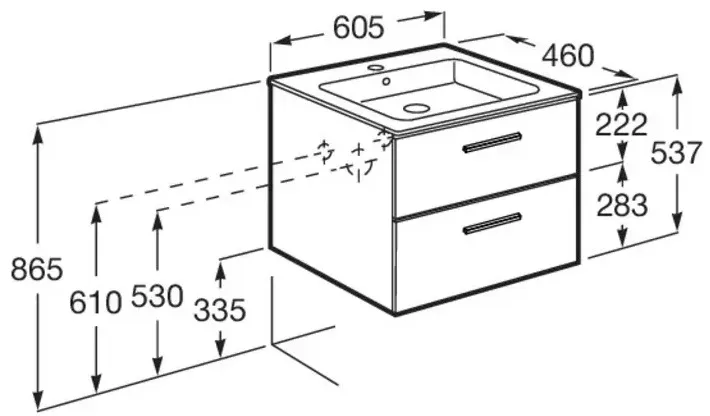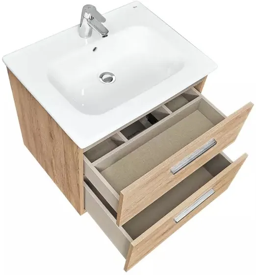 Характеристики товара Тумба-умывальник подвесная Roca Victoria 60 орех A857468517+32799E000