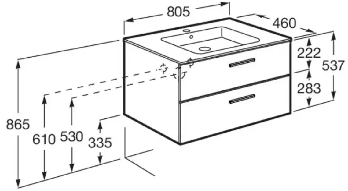 Характеристики товара Тумба-умывальник подвесная Roca Victoria 80 городской дуб A857470402+32799C000
