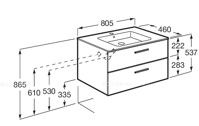 Характеристики товара Тумба-умывальник подвесная Roca Victoria 80 орех A857470517+32799C000