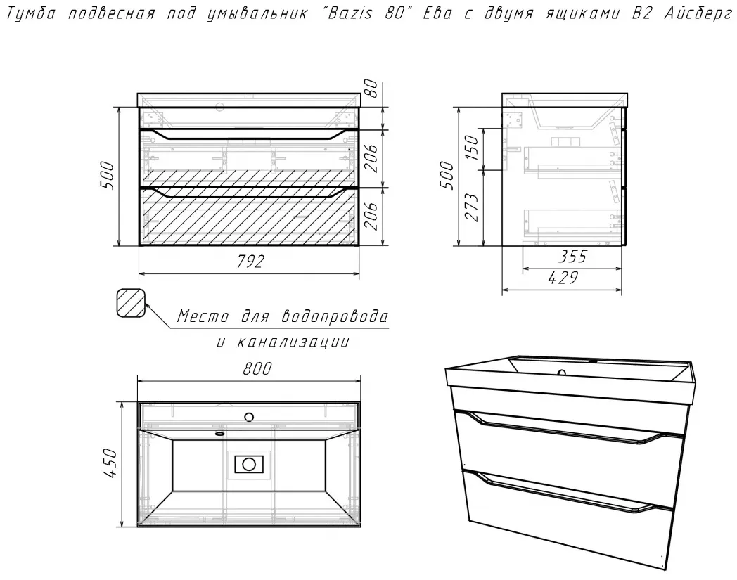 Характеристики товара Тумба-умывальник подвесной Айсберг Ева 80 белый DA5917T+4670142930020