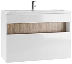 Тумба-умывальник подвесной Домино Fortuna 100 белый/дуб вотан DF3104T+4640021065204