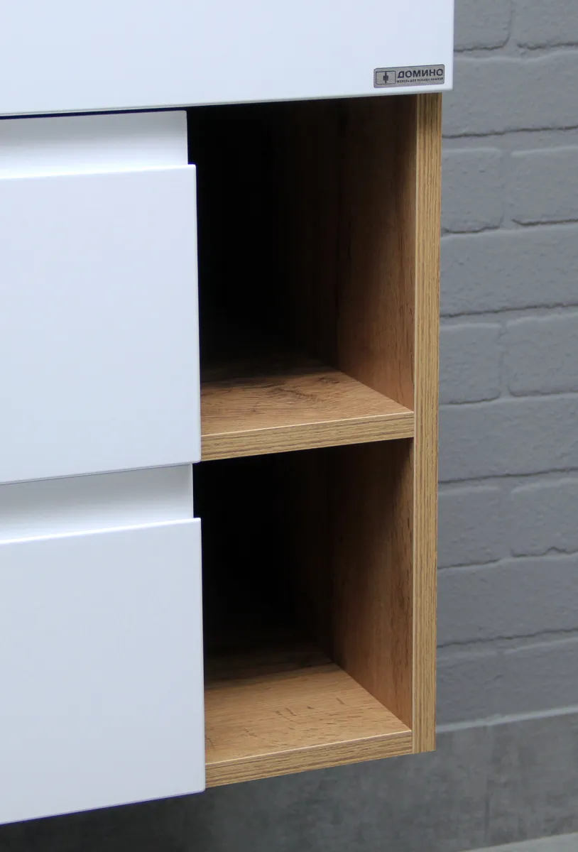 Характеристики товара Тумба-умывальник подвесной Домино Frost 80 белый/дуб вотан DF3402T+4670142930273