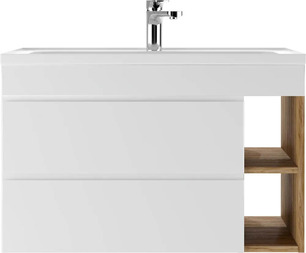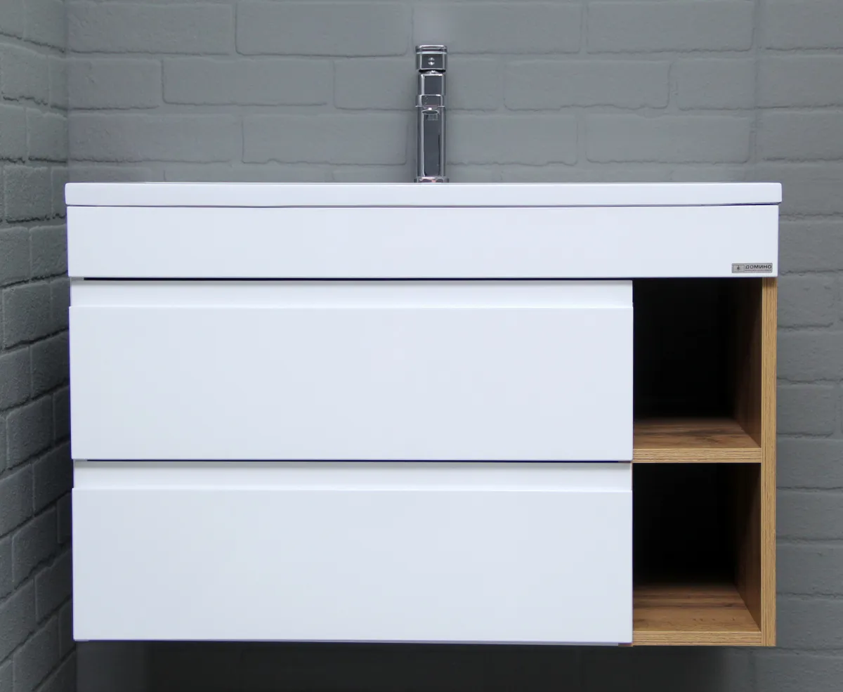 Тумба-умывальник подвесной Домино Frost 80 белый/дуб вотан DF3402T+4670142930273