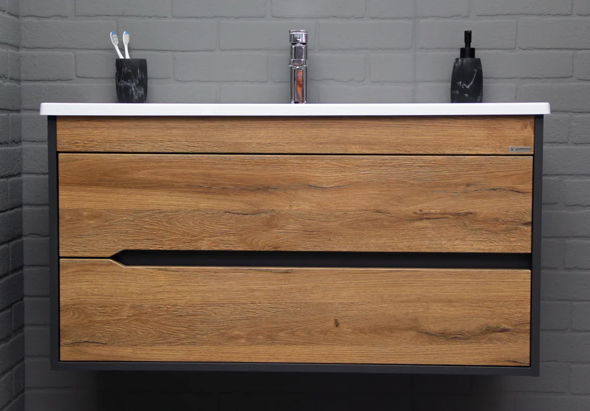 Тумба-умывальник подвесной Домино Karat 100 дуб вотан/антрацит DK3204T+4640021065204