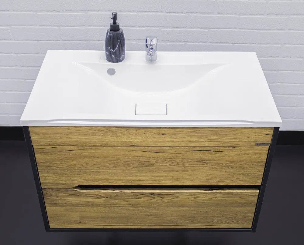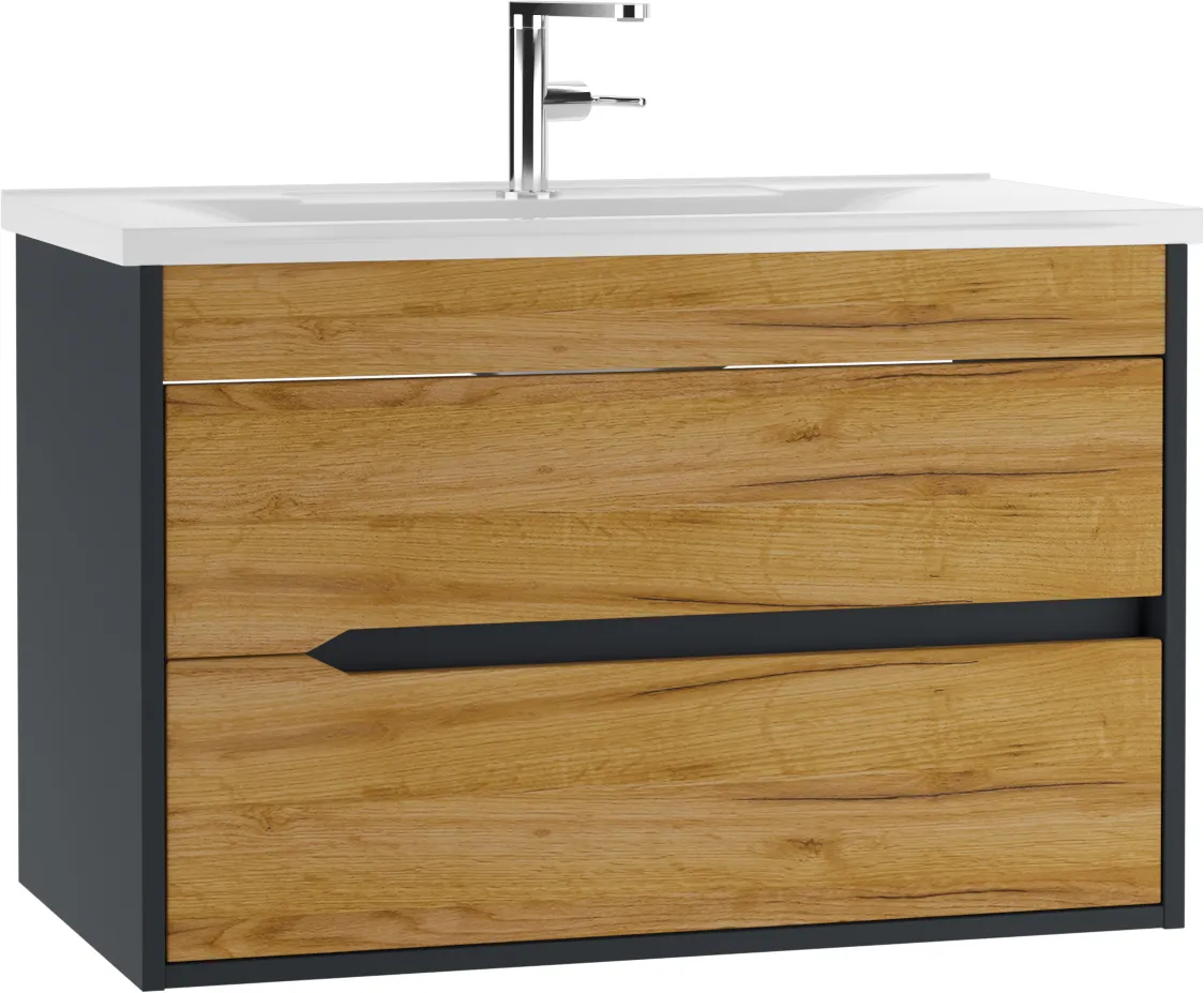 Тумба-умывальник подвесной Домино Karat 80 дуб вотан/антрацит DK3202T+4627173210119