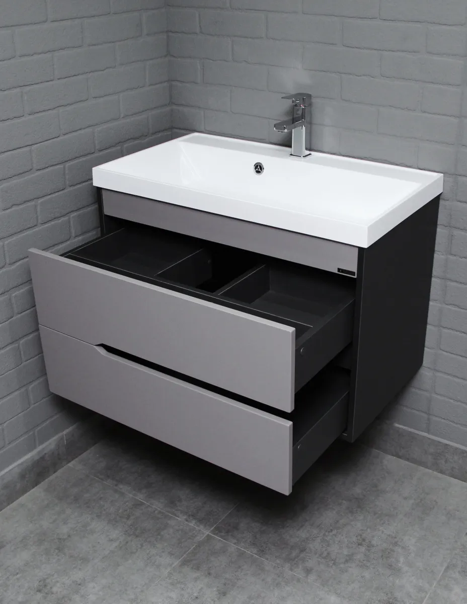 Тумба-умывальник подвесной Домино Karat 80 серый тауп DK3216T+4627173210188