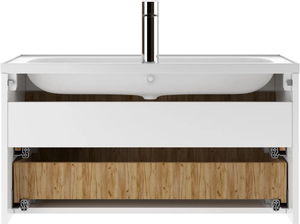 Тумба-умывальник подвесной Домино Senator 80 белый/дуб вотан DS4302T+4670142930273