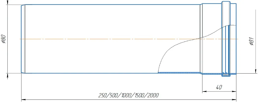 КОМПЛЕКТАЦИЯТруба D80 2000мм – 1 шт., уплотнение силиконовое D80 – 1 шт.