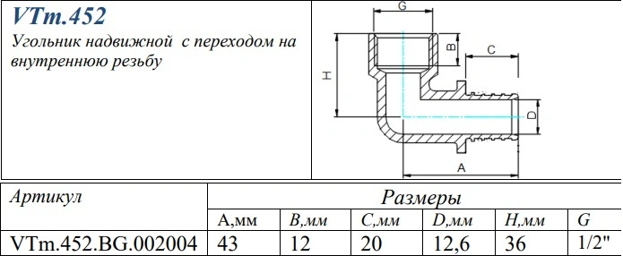 Характеристики товара Уголок аксиальный переходной 20мм x ½"в Valtec VTm.452.BG.002004