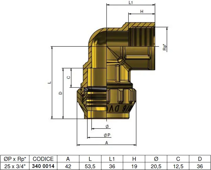 Характеристики товара Уголок компрессионный переходной 25мм x ¾"в Tiemme 3400014