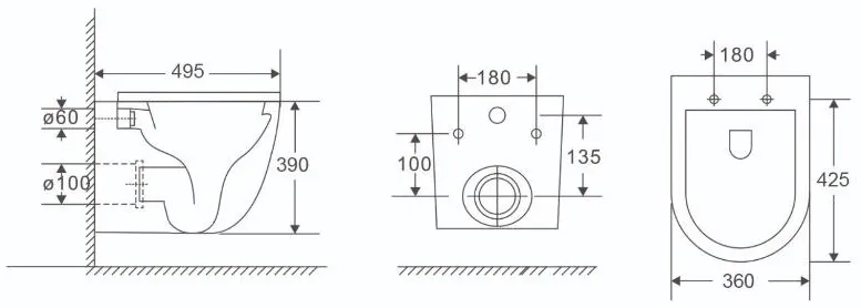 Характеристики товара Унитаз подвесной безободковый Terminus Аврора Monolit Tornado белый 01WM49x36W