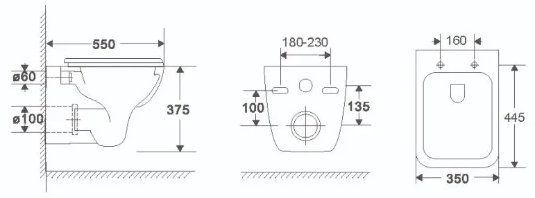 Характеристики товара Унитаз подвесной безободковый Terminus Ното белый 04W50х35W