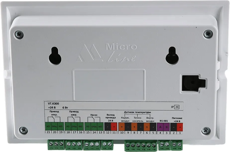 (VT.K300) Универсальный контроллер для смесительных узлов VT.K300 предназначен для плавного управления насосно-смесительными узлами различного типа. Управление смесительным клапаном производится в плавном режиме с использование принципа ПИД-регулирования, коэффициенты ПИД пользователь может настроить индивидуально под каждый объект. Управление насосом производится в дискретном режиме (включить/выключить) по заданной температуре теплоносителя. Один контроллер предназначен для управления одним насосно-смесительным узлом.