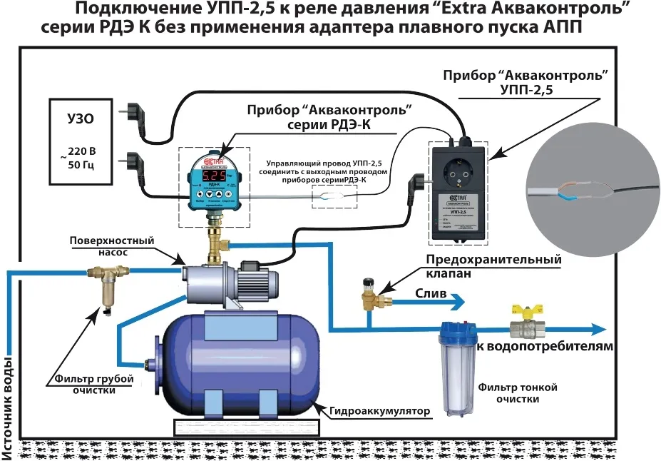 При необходимости защиты насосного оборудования от перегрузок по току используйте устройства защиты насосов серии «УЗН Акваконтроль».