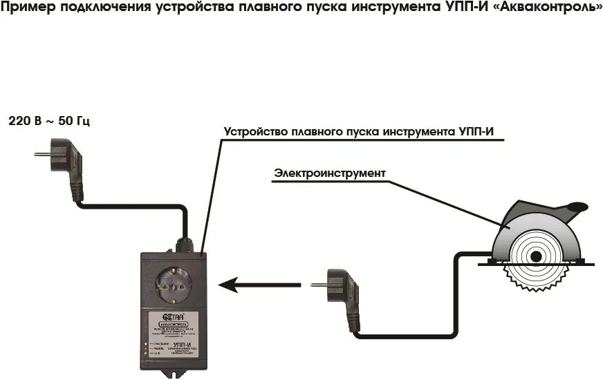 УПП можно использовать для управления ручным электроинструментом, не имеющим встроенной электронной системы управления и плавного пуска.