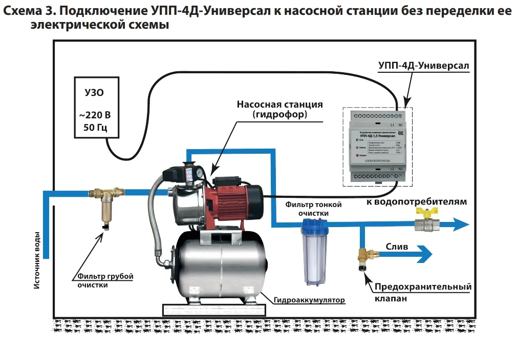При необходимости защиты насосного оборудования от перегрузок по току используйте устройства защиты насосов серии "УЗН Акваконтроль"