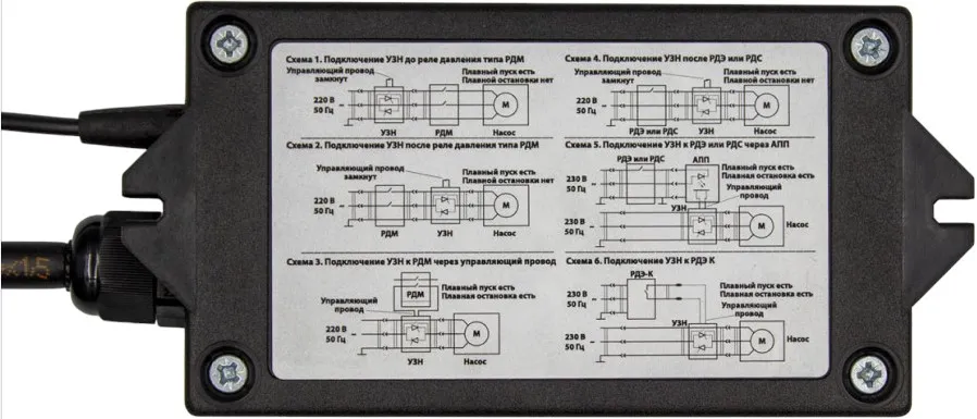 УЗН обладает функцией обучения характеристикам подключенного насоса, что позволяет использовать его с насосами разных мощностей без проведения электроизмерительных работ и кропотливой настройки.