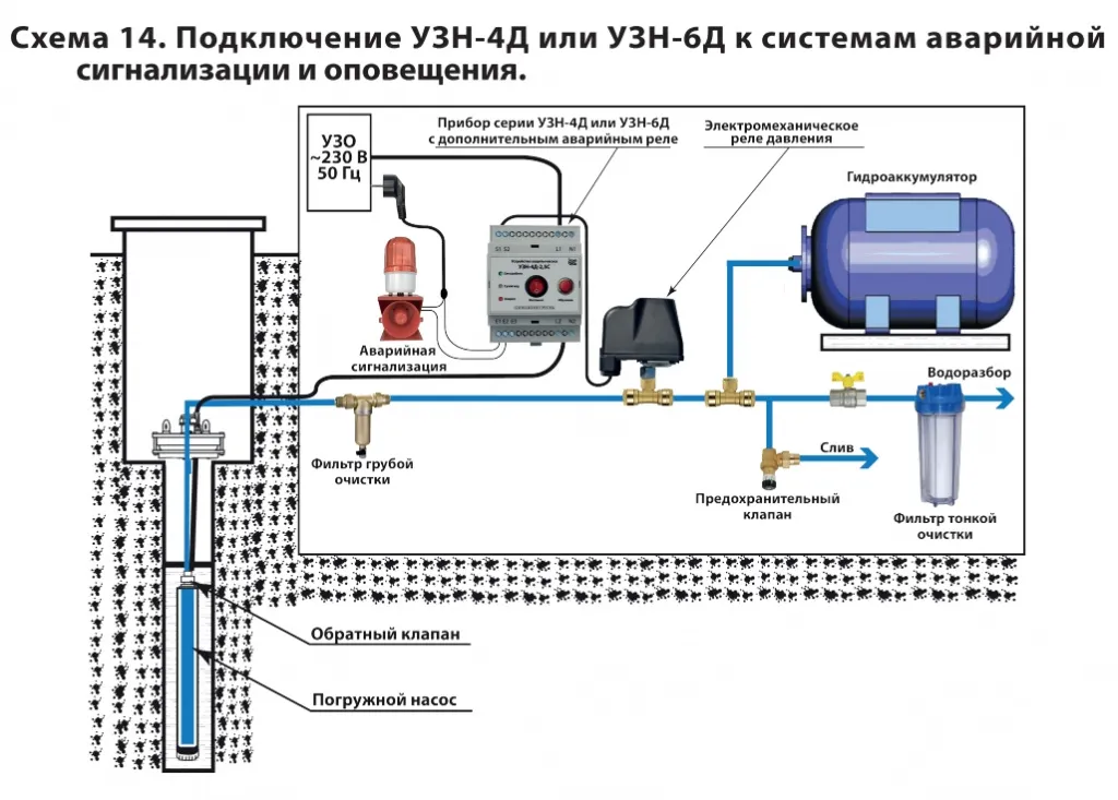 • защиту электродвигателя насоса от перегрузок по току и напряжению;