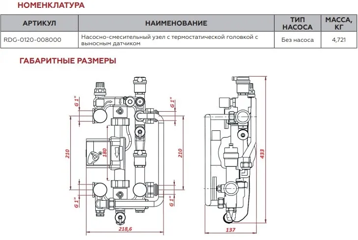 Характеристики товара Узел насосно-смесительный без насоса Rommer RDG-0120-008000