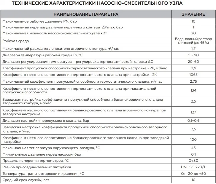 Номинальная тепловая мощность смесительного узла (Δt=10°С)20 кВт