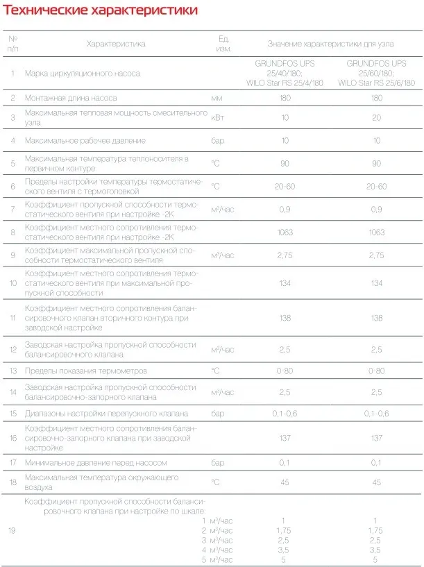 Номинальная тепловая мощность смесительного узла (Δt=10°С)20 кВт