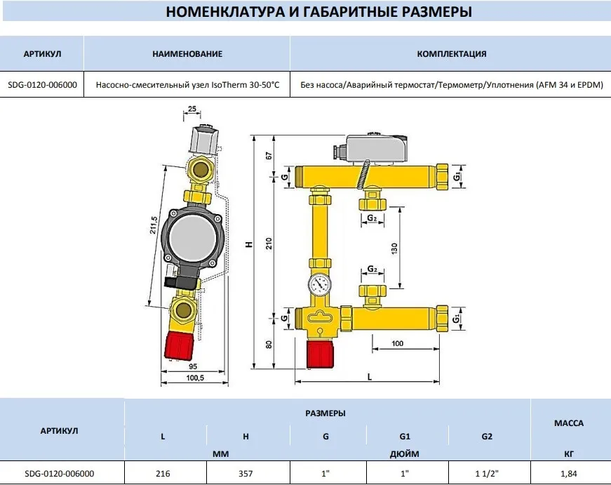 Характеристики товара Узел насосно-смесительный без насоса Stout SDG-0120-006000