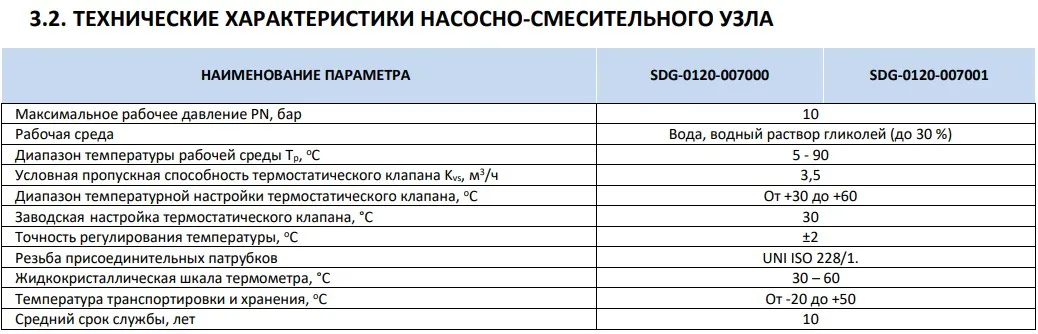 Характеристики товара Узел насосно-смесительный без насоса Stout SDG-0120-007000