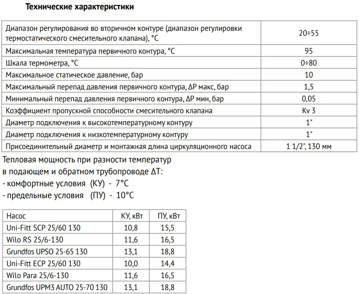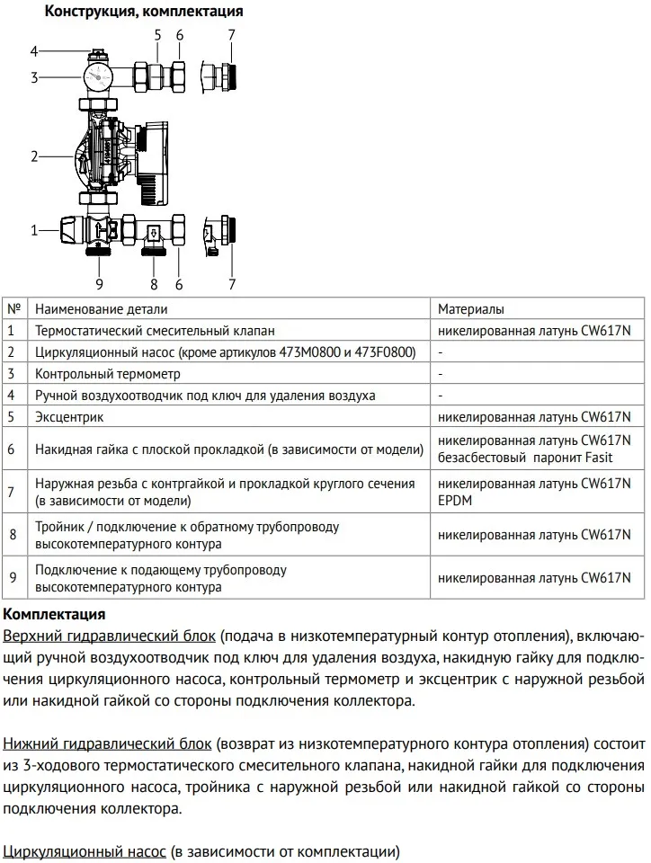 Характеристики товара Узел насосно-смесительный без насоса Uni-fitt Solomix 473M0800