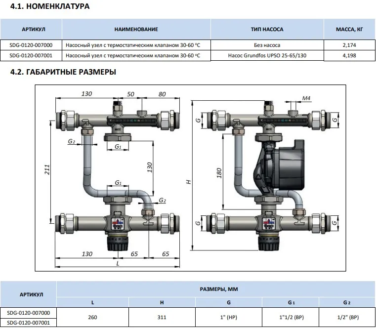 Характеристики товара Узел насосно-смесительный с насосом Grundfos UPSO 25-65 130 Stout SDG-0120-007001