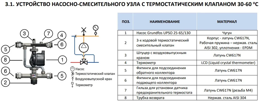Узел насосно-смесительный с насосом Grundfos UPSO 25-65 130 Stout SDG-0120-007001