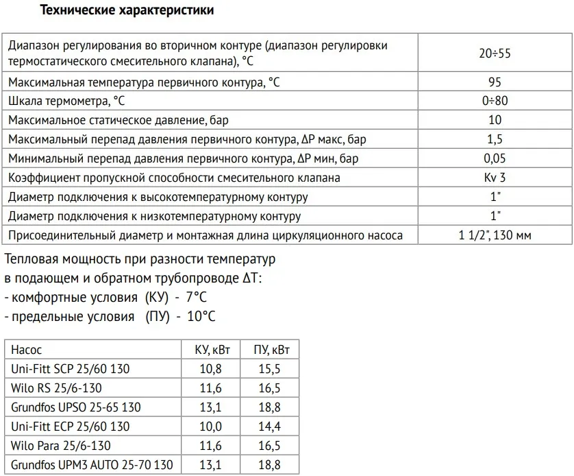 Характеристики товара Узел насосно-смесительный с насосом Grundfos UPSO 25-65 130 Uni-fitt Solomix X 473G0802