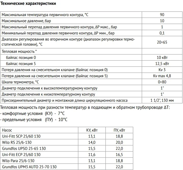 Номинальная тепловая мощность смесительного узла (Δt=10°С)18.8 кВт