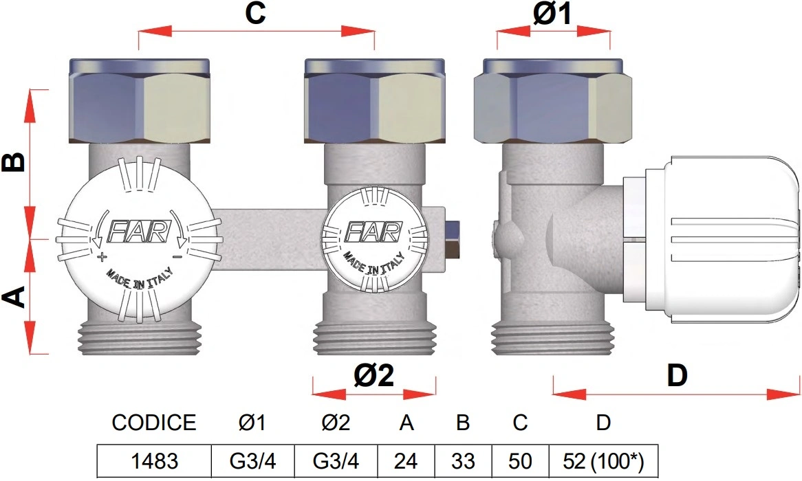 Характеристики товара Узел нижнего подключения радиатора с байпасом терморегулирующий прямой ¾"ек x ¾"нг Far FV 1483