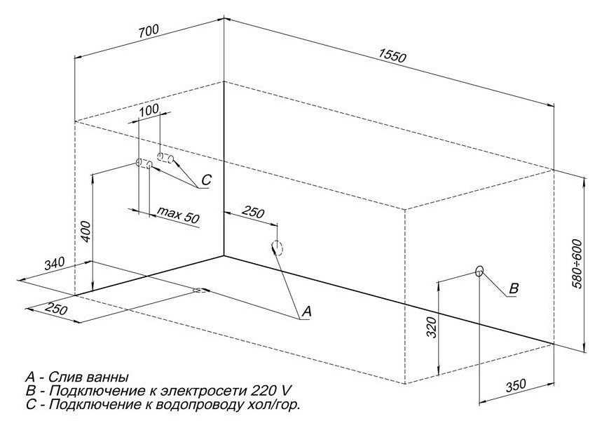 Характеристики товара Ванна акриловая Aquanet Bright 155x70 00239596