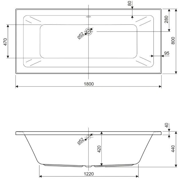 Характеристики товара Ванна акриловая Cezares Plane Solo Mini 180x80