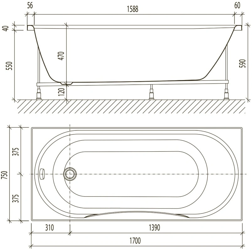 Ванна акриловая Eurolux Oliva 170х75 E1017075026