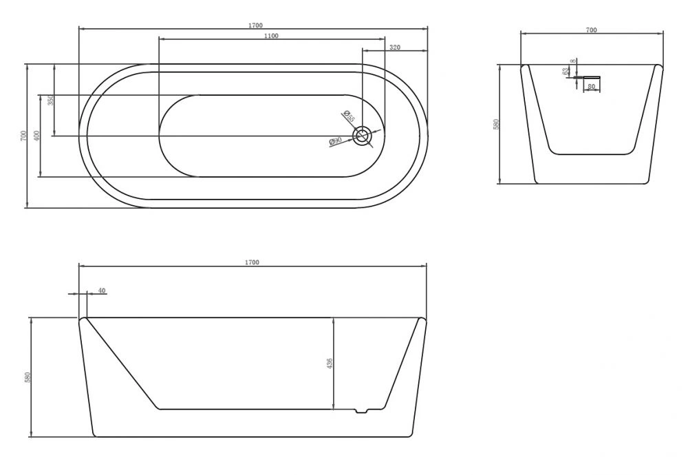 Характеристики товара Ванна акриловая отдельностоящая Abber 175x70 AB9272-1.7