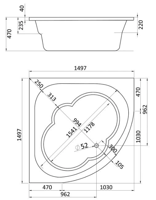 Характеристики товара Ванна акриловая Santek Канны 150x150 1WH111983