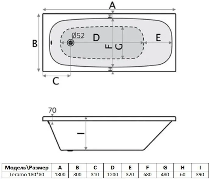 Характеристики товара Ванна акриловая Toni Arti Teramo PL 180х80 TA-T18075