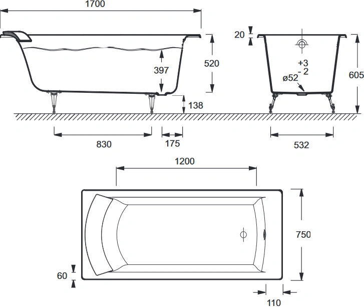 Характеристики товара Ванна чугунная Jacob Delafon Biove 170x75 E2930-00