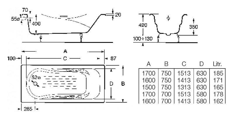 Характеристики товара Ванна чугунная Roca Malibu 170x70 2333G0000