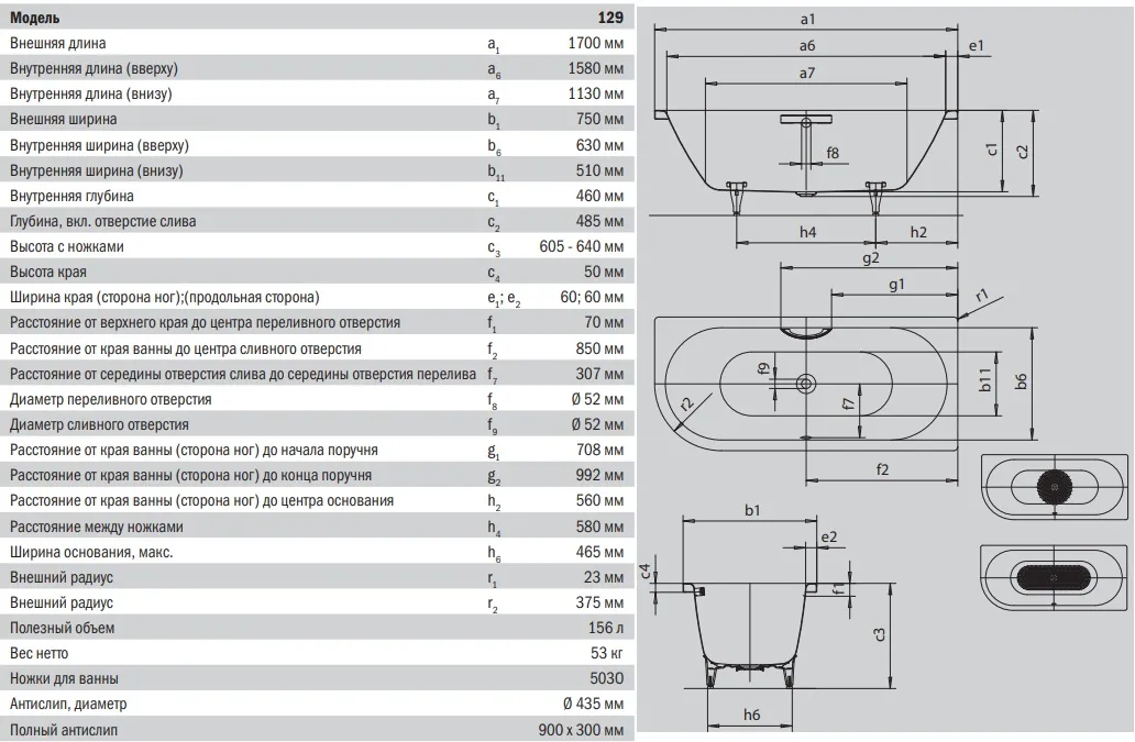 Характеристики товара Ванна стальная Kaldewei Centro Duo 1 левая 170x75 mod. 129 anti-slip+easy-clean белый 282930003001