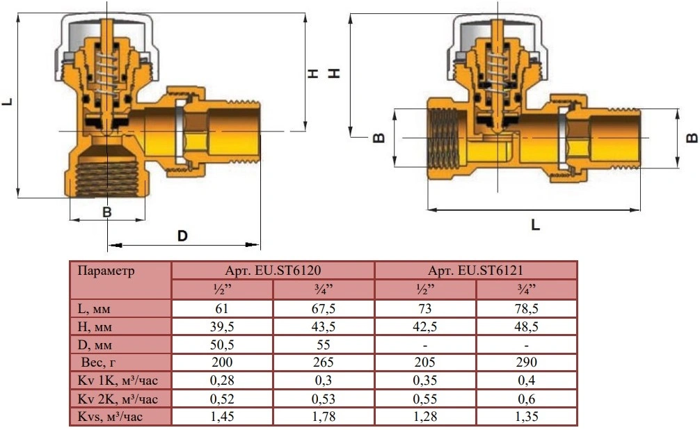 Характеристики товара Вентиль терморегулирующий прямой ¾" в/н Euros EU.ST6121040 34