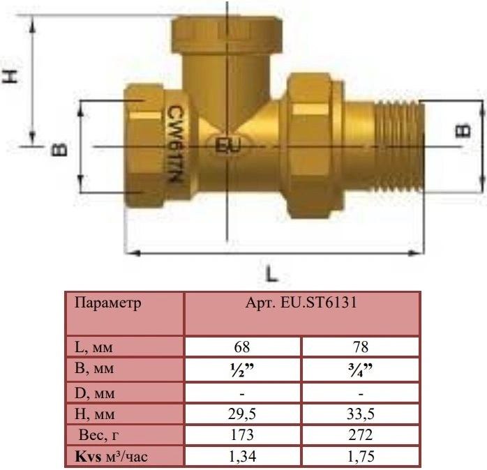 Характеристики товара Вентиль запорный прямой ¾" в/н Euros EU.ST6131040 34_k